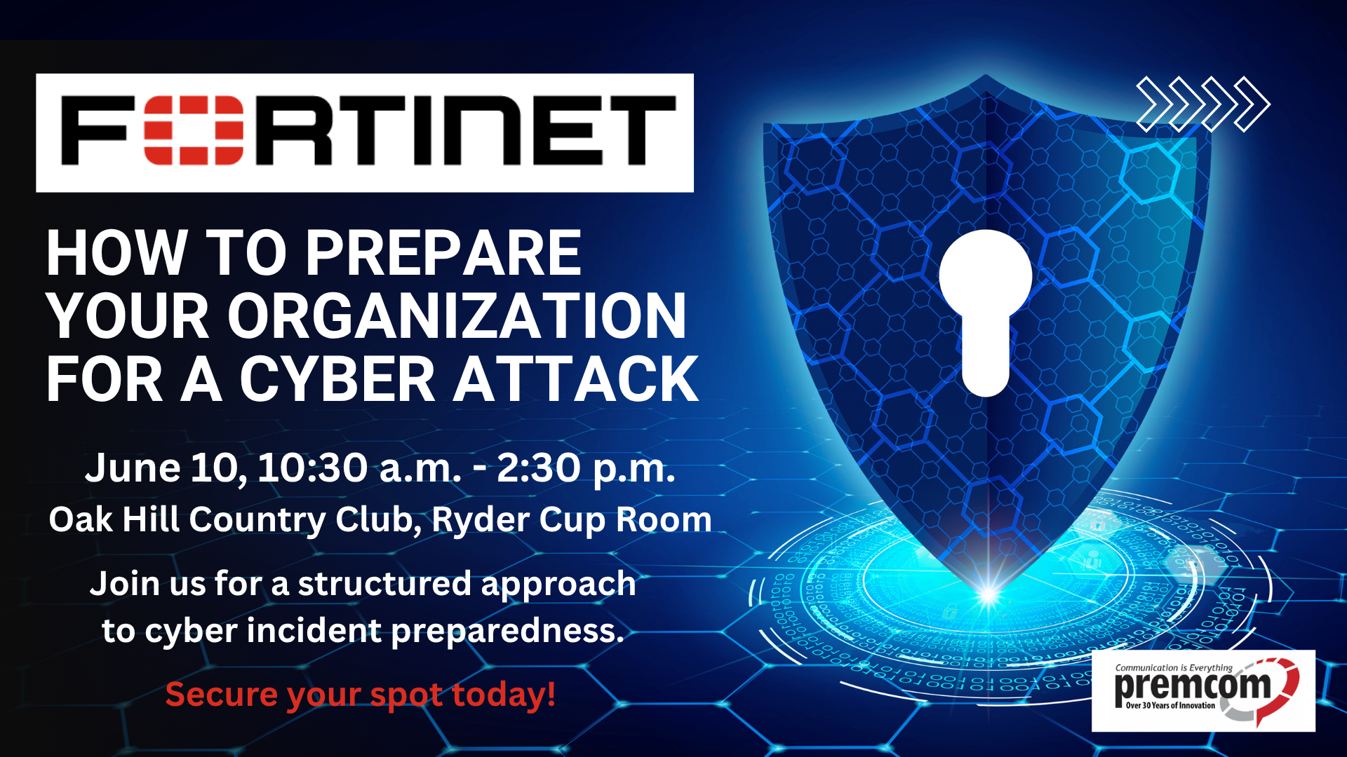 Is your organization truly prepared? Cyber attacks are happening every day. Join us for an interactive session designed to help you rehearse, respond and recover with confidence. Learn how attacks unfold and what you should do before one happens to you. Secure your spot at this lunch and learn.
